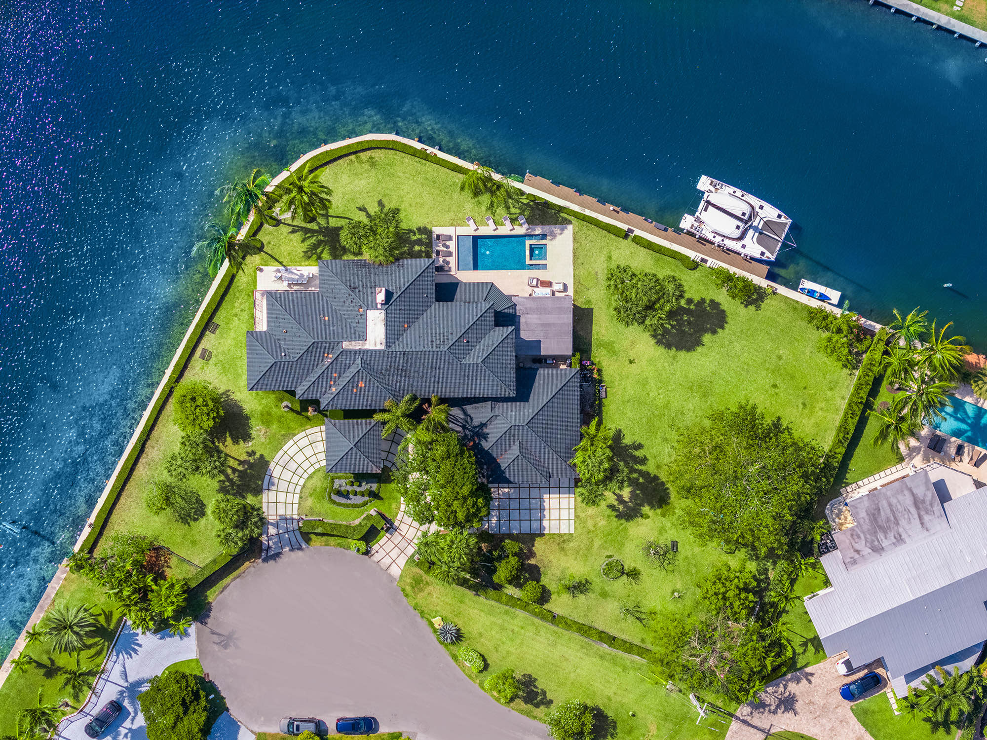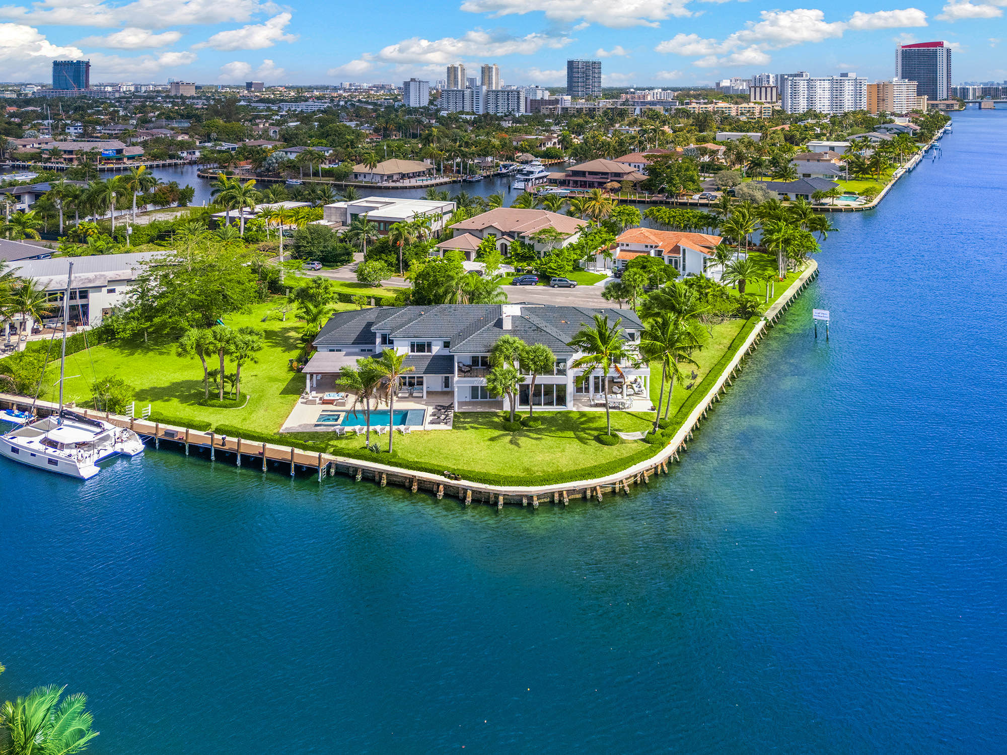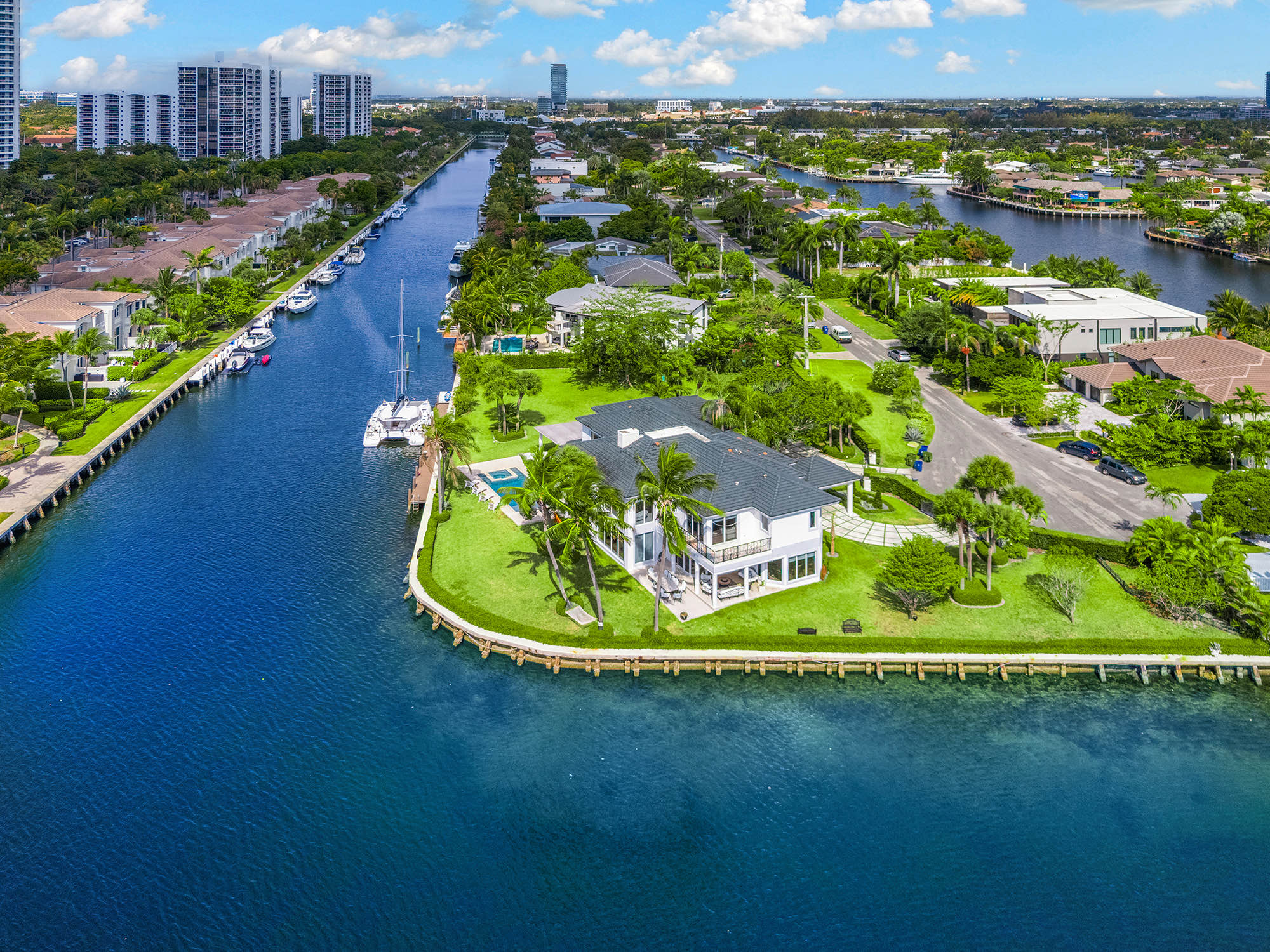 Experience unparalleled luxury on one of the finest point corner properties in Golden Isles. Spanning a spacious 38,844 SF, this oversized double lot, originally three parcels combined into two, features an extraordinary 420 ft of water frontage. This property captivates with unobstructed picturesque western bay views of Golden Beach skyline. This exquisite 7-bed, 9.5-bath home has been meticulously renovated & includes a separate guest house. A private oasis awaits in the beautifully landscaped front yard & pool area, entirely secluded from the street. Enjoy soaring ceilings throughout, an expansive master suite with generous walk-in closets, & a lavish windowed master bath designed for indulgence. Golfers paradise! Just a few minutes away from an exclusive golf & tennis resort.